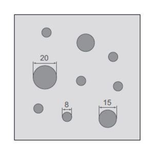Γυψοσανίδα με ακανόνιστη διάτρηση 8/18 και επένδυση πίσω πλευράς με μαύρο ακουστικό φίλτρο, συντελεστή ηχοαπορρόφησης αw = 0,70 κλάση C, ποσοστό διάτρησης 9,5% και άκρα SK.