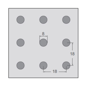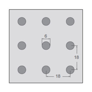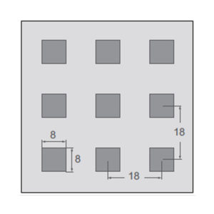 Γψοσανίδα με τετράγωνη διάτρηση 8/18 και επένδυση πίσω πλευράς με μαύρο ακουστικό φίλτρο, συντελεστή ηχοαπορρόφησης αw = 0,75 κλάση C, ποσσοστό διάτρησης 19,8% και άκρα SK.