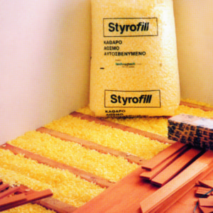 Το STYROFILL, είναι ο μοναδικός εύκολος και οικονομικός τρόπος γεμίσματος ξύλινων πατωμάτων χωρίς δυσάρεστες εκπλήξεις. Λόγω των ιδιαίτερων χαρακτηριστικών του (δεν απορροφά υγρασία και μυρωδιές, δεν συντηρεί τους μύκητες, δε μουχλιάζει, δεν προξενεί φαγούρα στον τεχνίτη που το τοποθετεί, επιτρέπει τον αερισμό των ξύλων και δεν συντηρεί την φλόγα) αποτελεί ιδανική λύση στο πρόβλημα της ηχομόνωσης δαπέδων από κρουστικούς θορύβους, ενώ παράλληλα προσφέρει και θερμομόνωση.