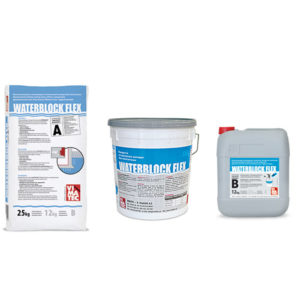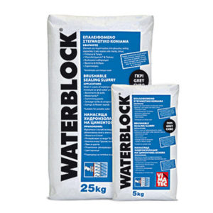 Συνδυασμός του ξηρού στεγανωτικού κονιάματος WATERBLOCK με τον ελαστικοποιητή VIMAFLEX σε αναλογία 2:1, σε ενιαία πρακτική συσκευασία.