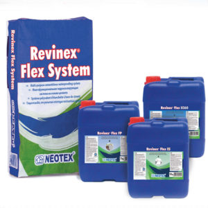 Tσιμεντοειδές σύστημα πολλαπλών χρήσεων κατάλληλο για εργασίες υγρομόνωσης σε επιφάνειες από σκυρόδεμα, τοιχοποιία, κάτω από πλακίδια και άλλα δομικά υποστρώματα. Αναμιγνύοντας το Α συστατικό του συστήματος Revinex® Flex με νερό ή με το κατάλληλο πολυμερές (συστατικό Β), υπάρχει η δυνατότητα εφαρμογής σε διαφορετικές εργασίες υγρομόνωσης ανάλογα με τις απαιτήσεις του έργου.