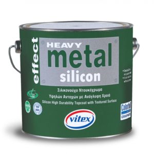 Σιλικονούχο ντουκόχρωμα διαλύτου υψηλής αντοχής με ανάγλυφη χροιά, κατάλληλο για εσωτερικές και εξωτερικές μεταλλικές επιφάνειες. Αυτός ο τύπος του Heavy Metal Silicon περιέχει υψηλό ποσοστό κόκκων οξειδίου του σιδήρου, το οποίο χαρίζει στη βαμμένη επιφάνεια ένα ιδιαίτερο διακοσμητικό φινίρισμα και ταυτόχρονα προσφέρει υψηλή αντοχή στη διάβρωση και την υπεριώδη (UV) ακτινοβολία. Μπορεί επίσης να χρησιμοποιηθεί και για τη βαφή ξύλου.