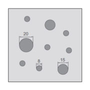 Γυψοσανίδα με κανονική διάτρηση 8/18 και επένδυση πίσω πλευράς με μαύρο ακουστικό φίλτρο, συντελεστή ηχοαπορρόφησης αw = 0,70 κλάση C, ποσοστό διάτρησης 9,5% και άκρα SK.